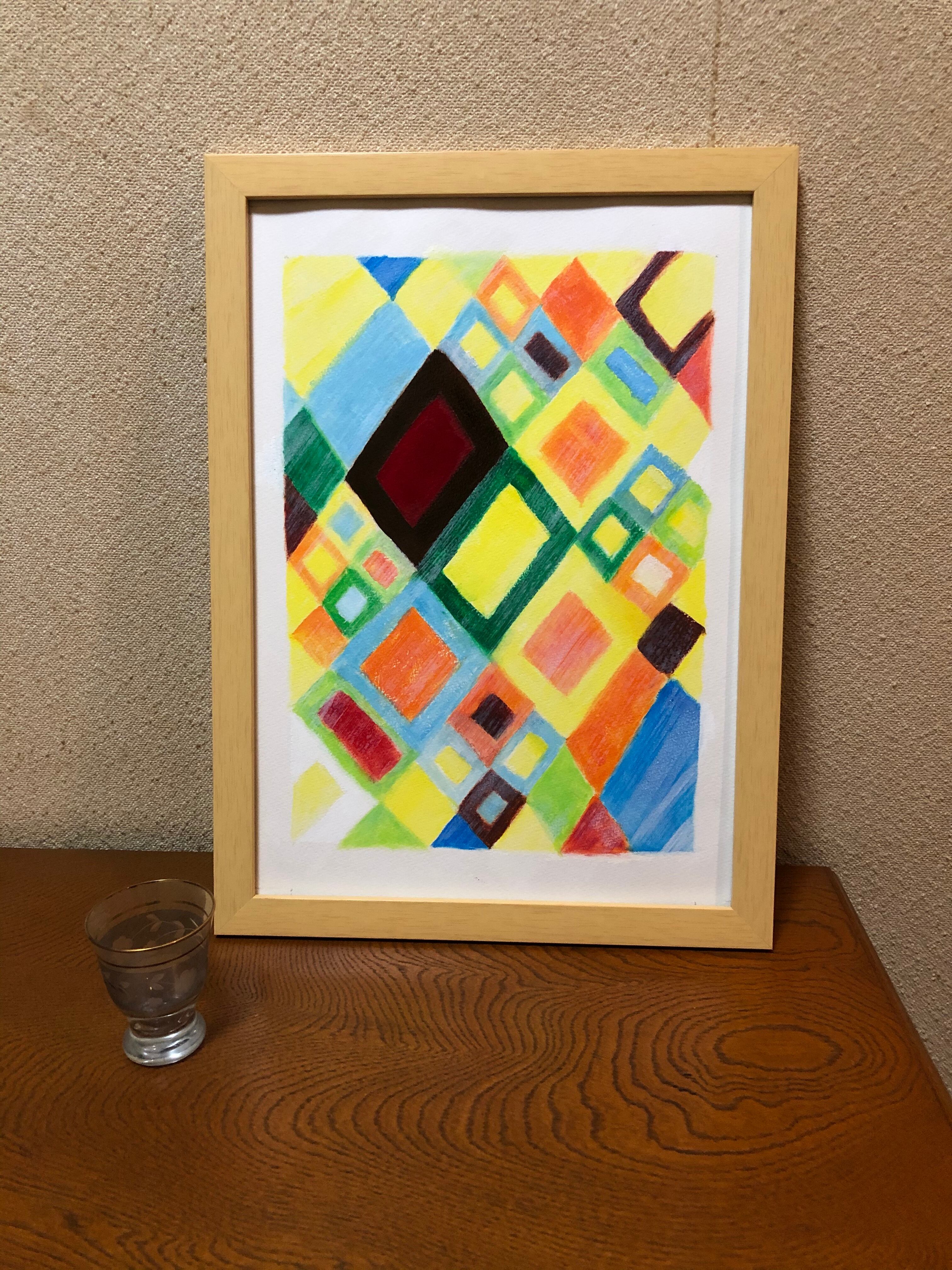フレームサイズ 400×290×14mm 画用紙 油彩画 一点物です。