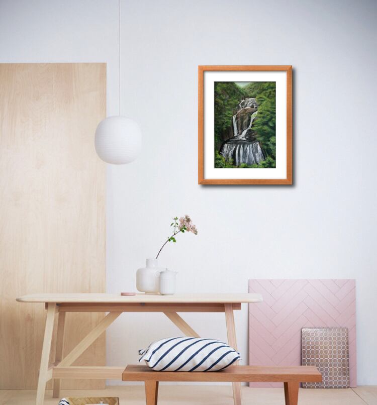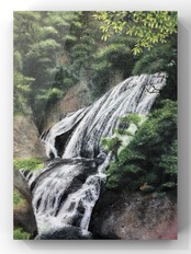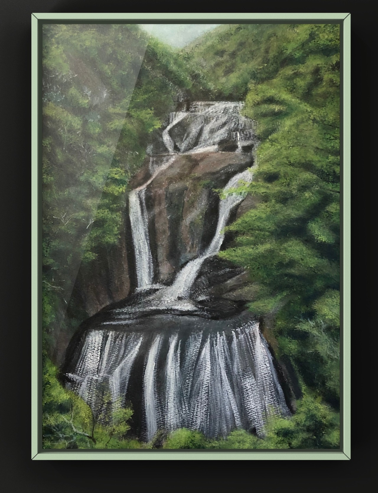 日本三大名瀑のひとつ 北茨城 大子町 袋田の滝を描きました。四季折々の表情を見せ、この季節は初夏です。地域のお米や野菜の美味しさが強く印象に残る素朴な土地柄です。